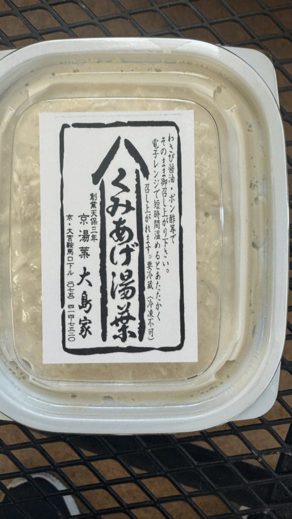 湯葉が食べたいとのことで、近くの湯葉屋さんに買いに行き、生湯葉も食べました。